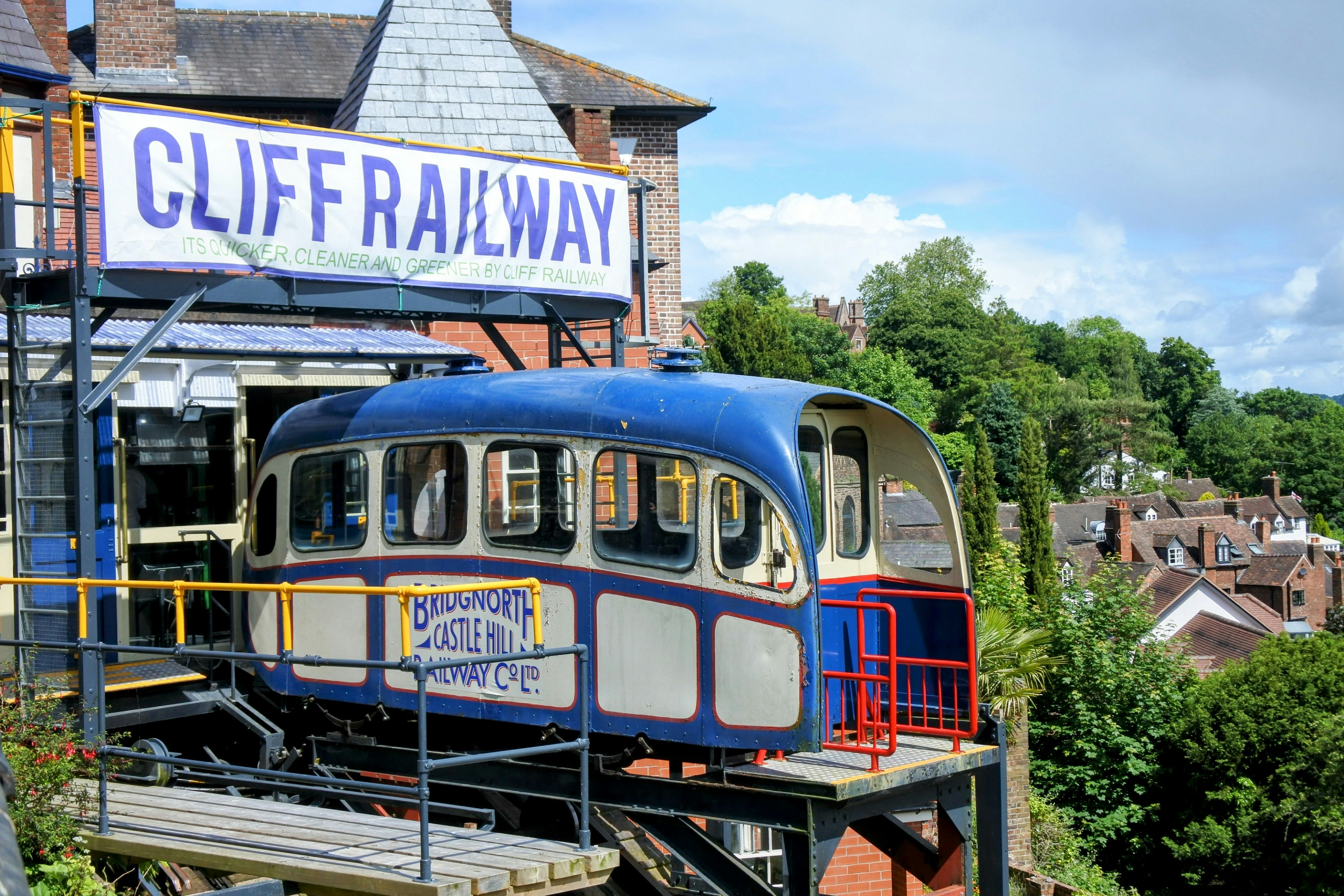 Bridgnorth is dramatically divided into High Town and Low Town, connected by England's only inland funicular railway and a steep flight of steps. The High Town sits on a sandstone cliff above the River Severn, offering spectacular views across the Shropshire countryside. The leaning castle ruins tilt at a greater angle than the Leaning Tower of Pisa, while the old streets are filled with independent shops and traditional tea rooms. The Severn Valley Railway runs vintage steam trains to Kidderminster through beautiful countryside.