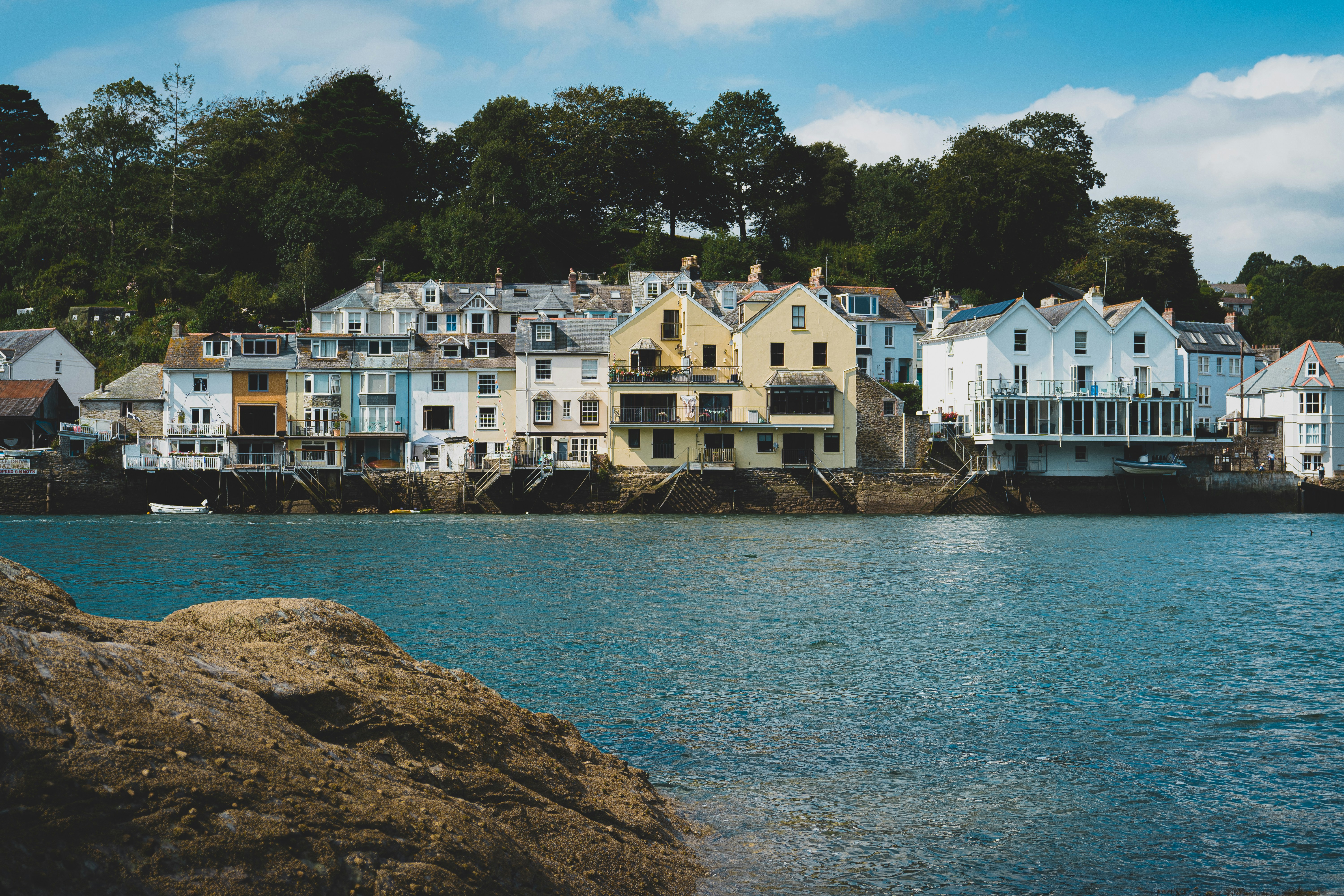 Fowey cascades down steep hillsides to a deep natural harbour that has sheltered ships since medieval times. The town's narrow streets and passageways reveal independent bookshops, galleries, and cafés, while the waterfront buzzes with sailing activity. Daphne du Maurier lived nearby and set many novels in the area, celebrated during the annual literary festival. Walks along the Hall Walk offer spectacular views across the harbour and estuary.